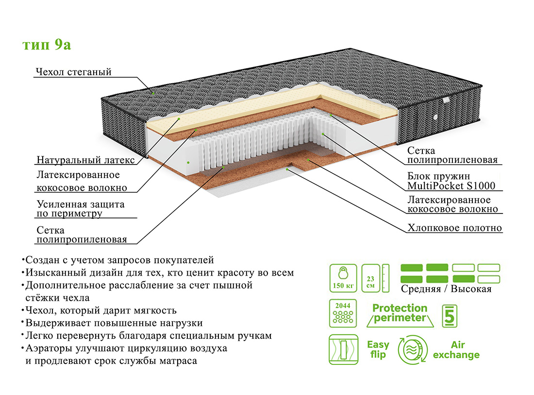 Мы исследовали запросы покупателей, и создали матрас, в котором учли всё! Матрас Тип 9а — это: