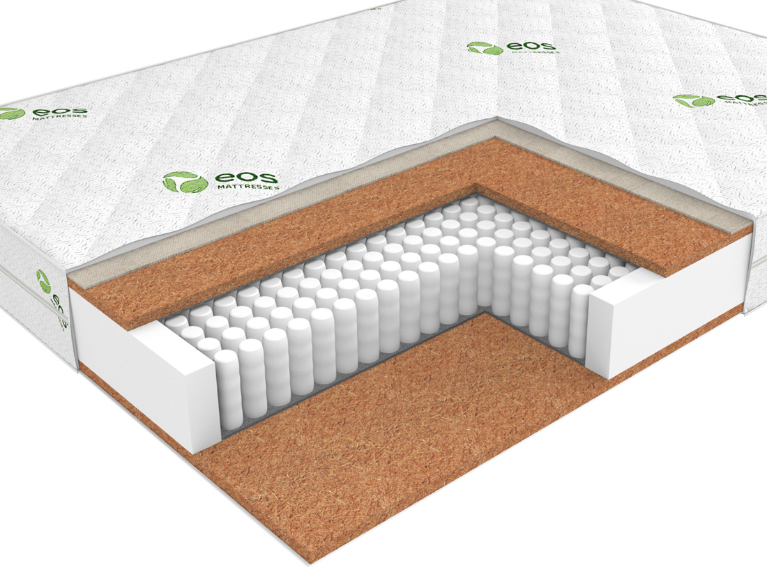 Натуральный гипоаллергенный материал. Благодаря пропитке из натурального латекса, волокна прочно скреплены в цельную плиту. Кокосовое волокно придает матрасу жёсткость и обладает бактерицидными свойствами. Производство – Enkev, Польша.