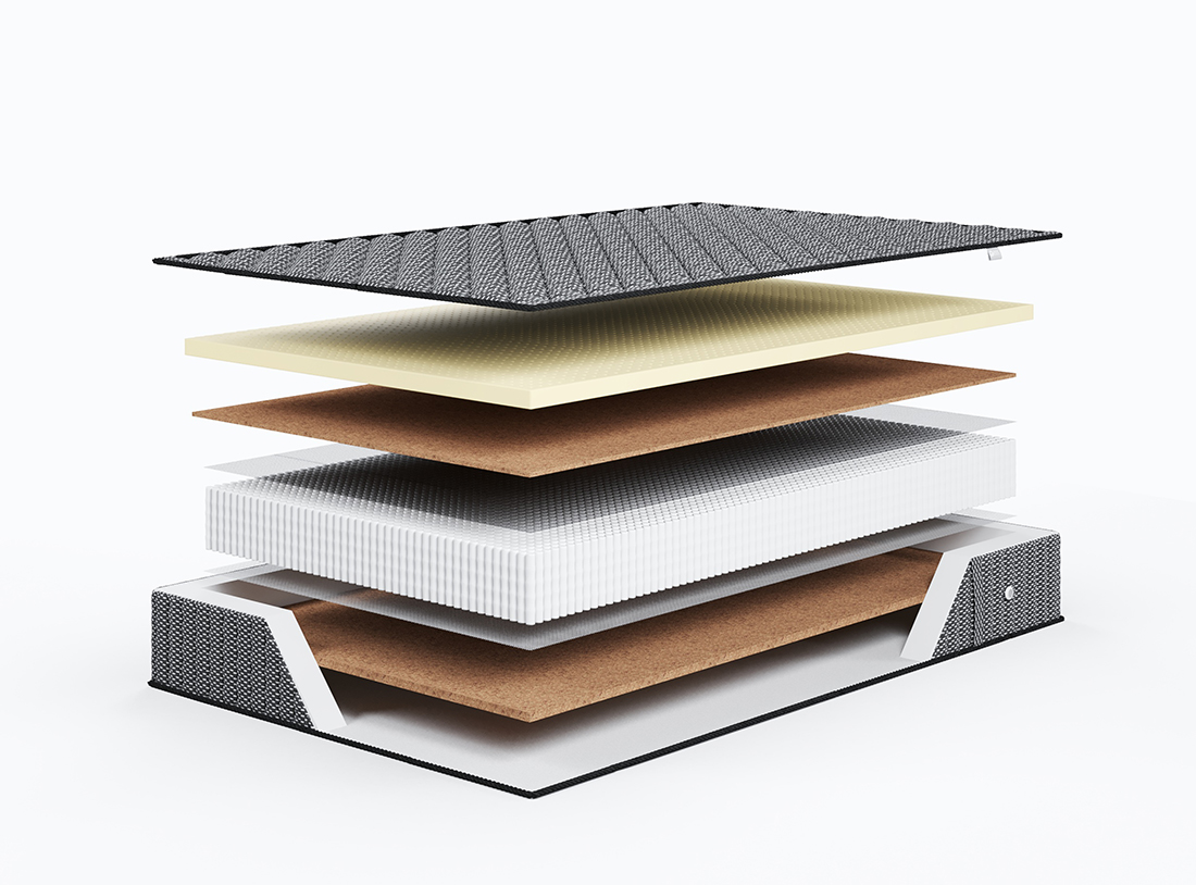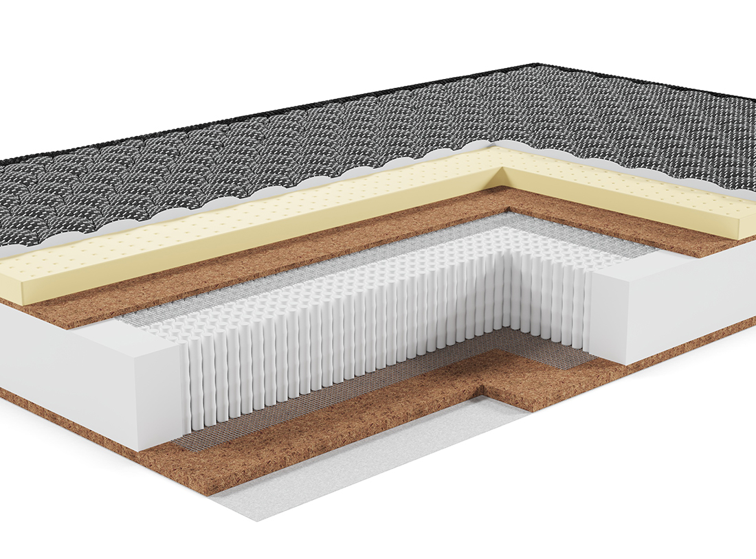 Материал потрясающей прочности. Используется как дополнительный слой, придающий жесткость и изолирующий пружинный блок от настилочных слоев. Делает матрас ещё прочнее и долговечнее