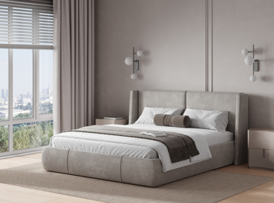Кровать «Dana» от интернет-магазина ЭОС, производится со встроенным основанием с ортопедическими ламелями. Модель в мягкой обивке оборудована наборными бортиками с диагонально идущими фактурными линиями. Для постельного белья предусмотрена ниша.