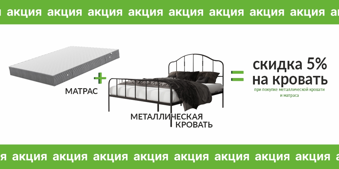 При покупке металлической кровати с матрасом вы получаете скидку 5% на кровать! Создайте уютное и стильное спальное пространство по выгодной цене....