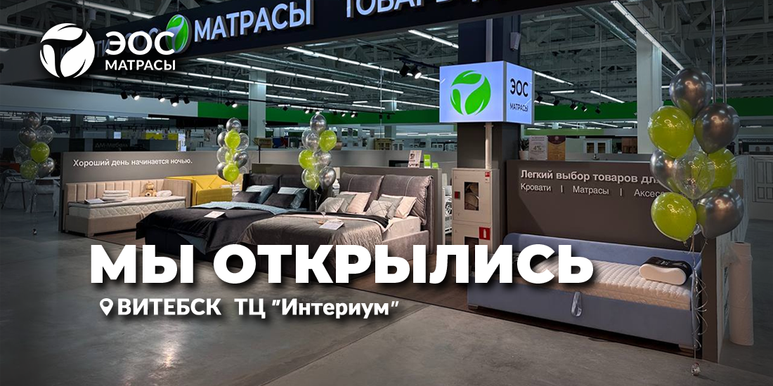 Отличные новости для жителей Витебска - открылся второй фирменный магазин «Матрасы ЭОС»!Здесь вас ждет широкий ассортимент популярных кроватей, матрас...